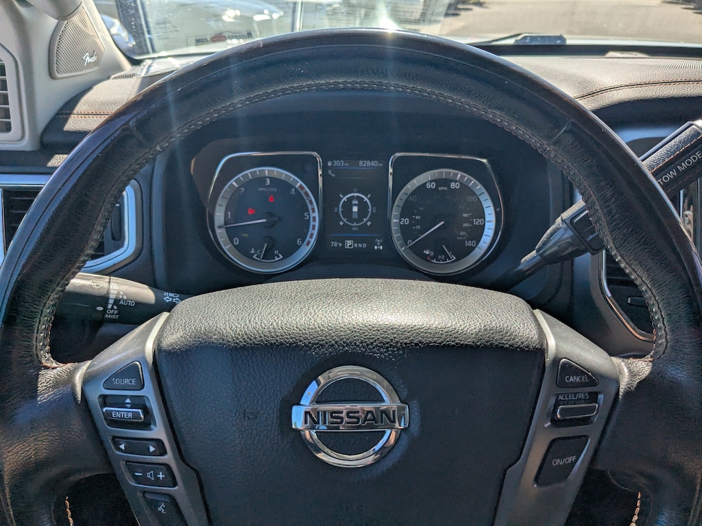 Feature-packed and decked out! A turbocharger further enhances performance, while also preserving fuel economy. This 4 door, 5 passenger truck has just over 80,000 miles. All of the premium features expected of a Nissan are offered, including: a rear step bumper, blind spot sensor, and seat memory. It features four-wheel drive capabilities, a durable automatic transmission, and 5 liter 8 cylinder engine.